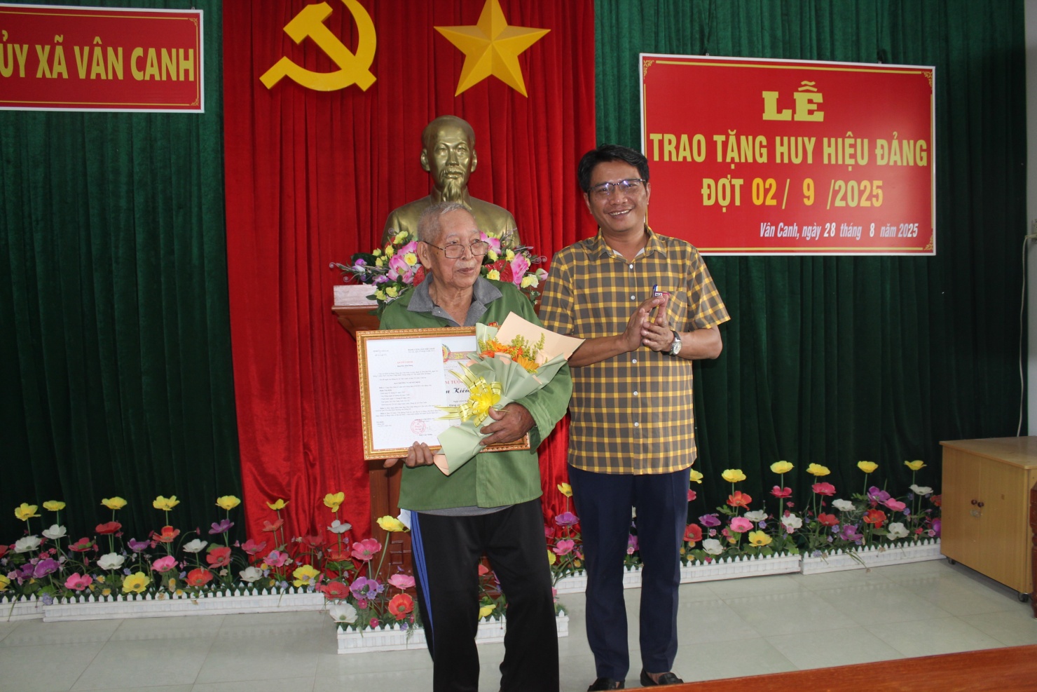 Chiều ngày 28/8/2025, tại hội trường Đảng ủy xã Vân Canh, Ban Thường vụ Đảng ủy xã long trọng tổ chức Lễ trao tặng Huy hiệu Đảng đợt 02/9/2025 cho các đảng viên tiêu biểu. Dự buổi lễ có các đồng chí Trần Kim Vũ, Bí thư Đảng ủy-Chủ tịch HĐND xã và các đồng chí Ủy viên Ban Thường vụ Đảng ủy xã cùng toàn thể đảng viên được nhận Huy hiệu Đảng.