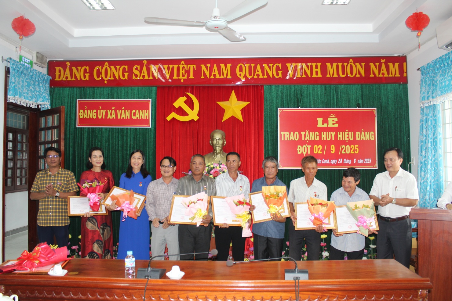 Trong đợt này, Đảng ủy xã Vân Canh vinh dự có 17 đồng chí được trao tặng Huy hiệu Đảng, trong đó có đồng chí Đinh Văn Kiến được trao Huy hiệu 65 năm tuổi Đảng; 8 đồng chí được trao Huy hiệu 40 năm tuổi Đảng; và 8 đồng chí được trao Huy hiệu 30 năm tuổi Đảng. Đây là phần thưởng cao quý của Đảng, ghi nhận quá trình phấn đấu, rèn luyện và cống hiến bền bỉ, lâu dài của các đồng chí đảng viên đối với sự nghiệp cách mạng.