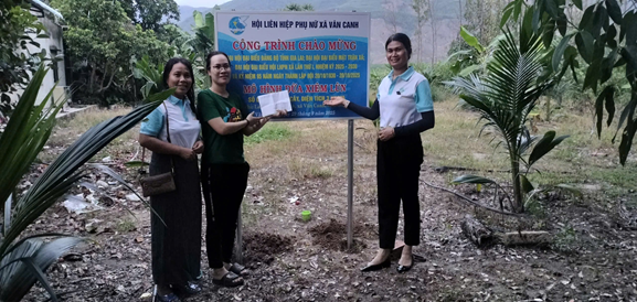 Ban Thường vụ Hội LHPN xã gắn biển công trình và hỗ trợ kinh phí chăm sóc giai đoạn đầu