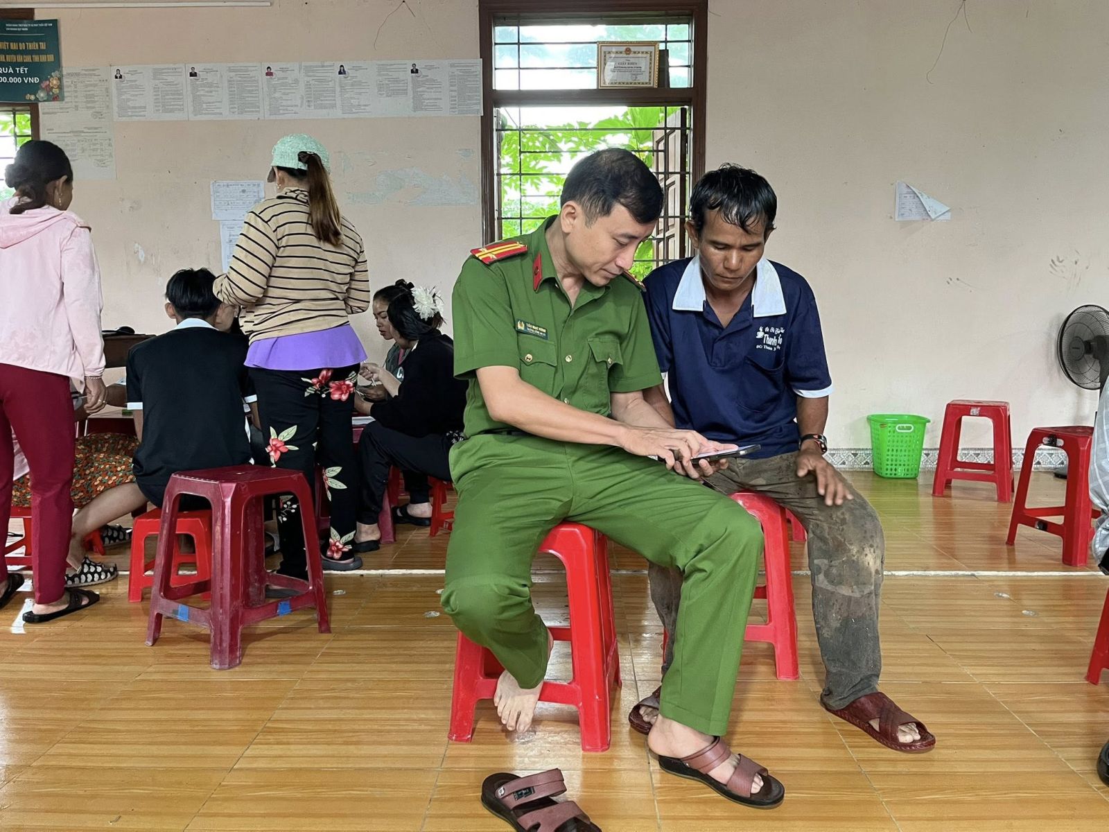 Dịp này, Công an xã cũng phối hợp tuyên truyền pháp luật về vũ khí, vật liệu nổ, công cụ hỗ trợ và hướng dẫn người dân tại Làng thực hiện định danh điện tử mức độ 2./.