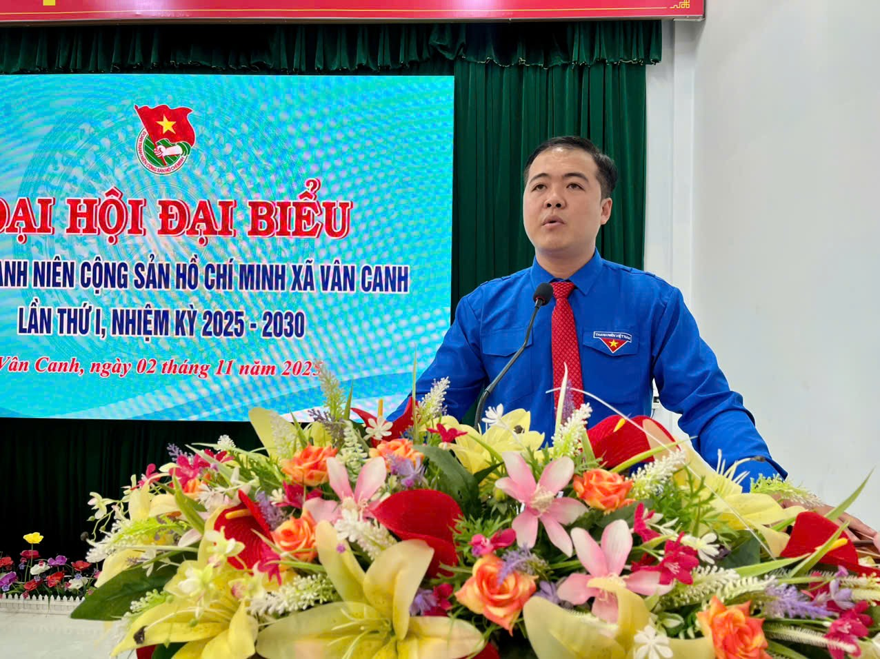 Sáng ngày 02/11/2025, tại xã Vân Canh đã diễn ra Đại hội Đại biểu Đoàn TNCS Hồ Chí Minh lần thứ I, nhiệm kỳ 2025 – 2030 với sự tham dự của 120 đại biểu chính thức, đại diện cho lực lượng đoàn viên, thanh thiếu nhi trên địa bàn. Đây là sự kiện chính trị quan trọng của tuổi trẻ địa phương, đánh dấu bước phát triển mới của công tác Đoàn và phong trào thanh thiếu nhi sau khi xã được thành lập theo Nghị quyết số 1664/NQ-UBTVQH15 của Ủy ban Thường vụ Quốc hội, trên cơ sở sáp nhập các đơn vị hành chính trước đây.