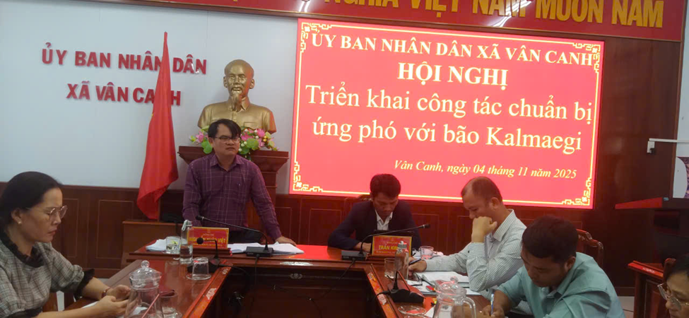 Thực hiện chỉ đạo của Ủy ban nhân dân tỉnh Gia Lai tại cuộc họp trực tuyến chiều ngày 04/11/2025, Ủy ban nhân dân xã Vân Canh đã tổ chức hội nghị triển khai công tác phòng, chống thiên tai và tìm kiếm cứu nạn trên địa bàn. Hội nghị do đồng chí Bí thư Đảng ủy và đồng chí Chủ tịch Ủy ban nhân dân xã Vân Canh đồng chủ trì.